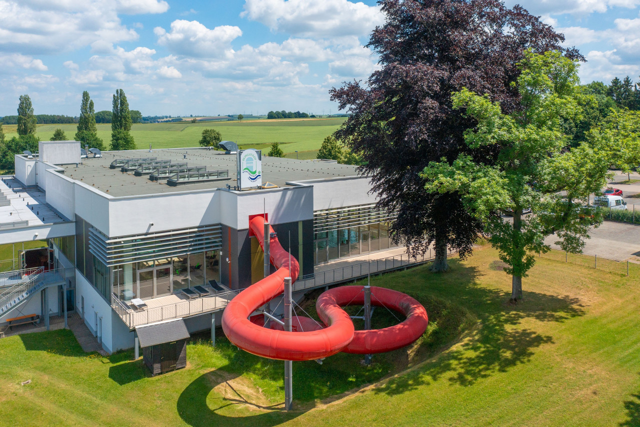Auch das Schwimmbad bietet für jeden Geschmack etwas: Hier kann man sportlich seine Bahnen ziehen oder im Nichtschwimmerbecken Pop Jet, Wasserspeier, Massagedüsen und Massageliege ausprobieren. Nicht zu vergessen die 60 Meter lange Black-Hole-Erlebnisrutsche für alle, die etwas mehr Action suchen. Damit ist das Schwimmbad – auch aufgrund der familienfreundlichen Eintrittspreise – in der Region besonders beliebt.