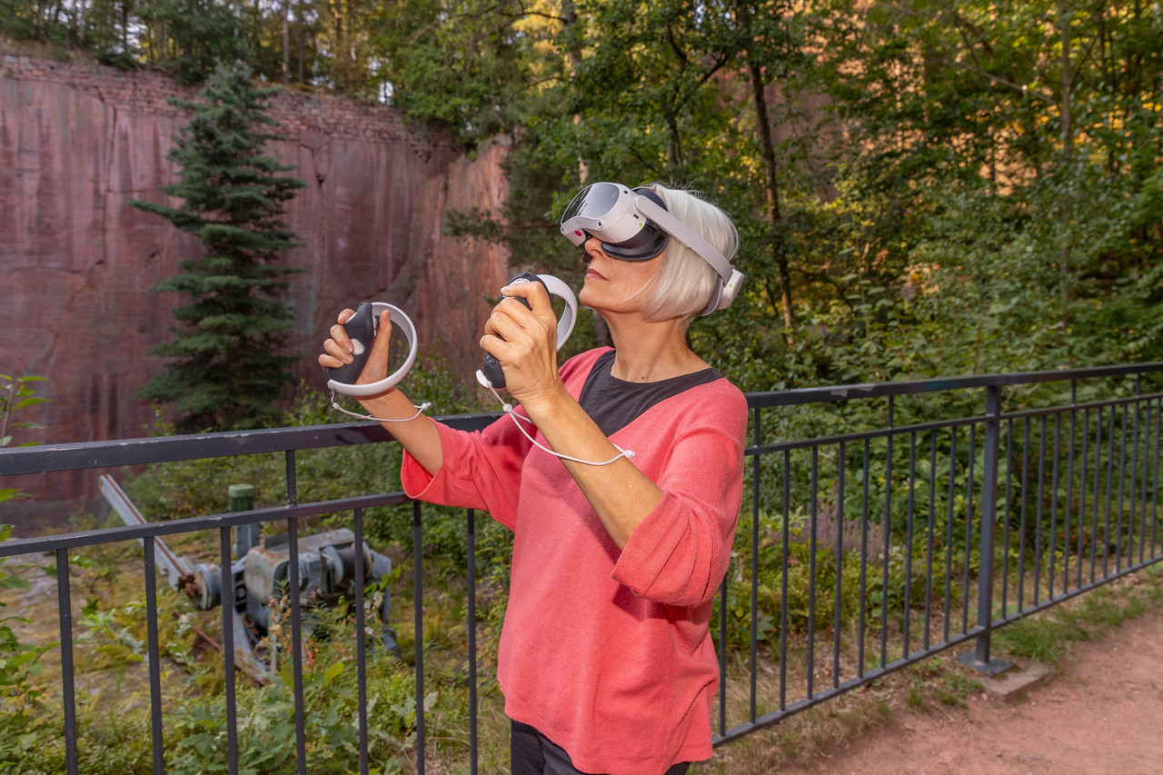 Im Geoportal Porphyrhaus, direkt am Gleisbergbruch, können Besucher mit drei bereitstehenden VR-Brillen den Alltag der Steinarbeiter nicht nur ansehen, sondern selbst erleben: Sie greifen virtuell zu Werkzeugen, schlagen Steine aus dem Gestein und spüren dabei, wie mühsam die Arbeit früher war – hautnah und interaktiv.
