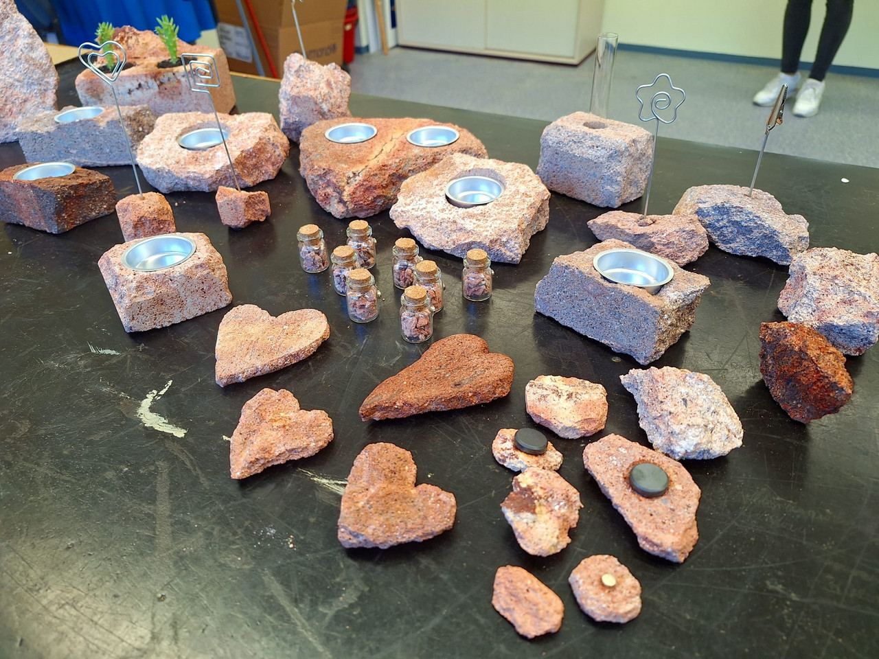 Die Souvenirs sind das Ergebnis des Projekts „Upcycling für einen Welterbe-Stein“, das im Rahmen des simul+Kreativ Mitmachwettbewerbs 2024 mit einem Preisgeld von 5.000 Euro ausgezeichnet wurde. Ziel ist es, Reststücke des Porphyrtuffs, die sonst ungenutzt bleiben würden, in hochwertige und nachhaltige Erinnerungsstücke zu verwandeln.